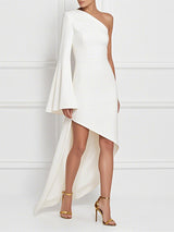 High-Low-Langarma-asymmetrische feste Farbe One-Shoulder Maxi-Kleider