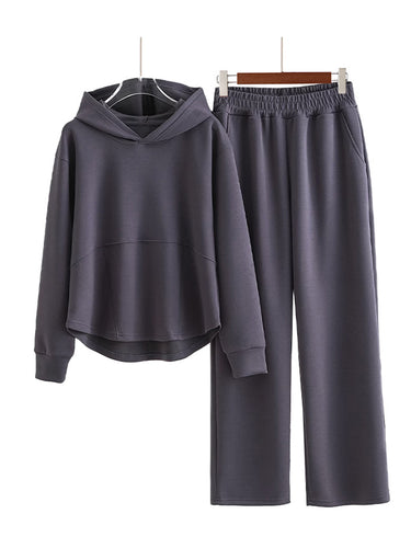 High-Low-Langarmelastizität Feste Farbe Split-Gelenk-Kapuzen-Pyjama-Sets