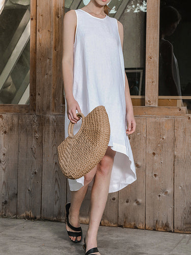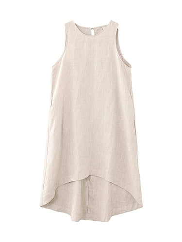 High-Low Lose Solid Color Rund-Hals Midi-Kleider
