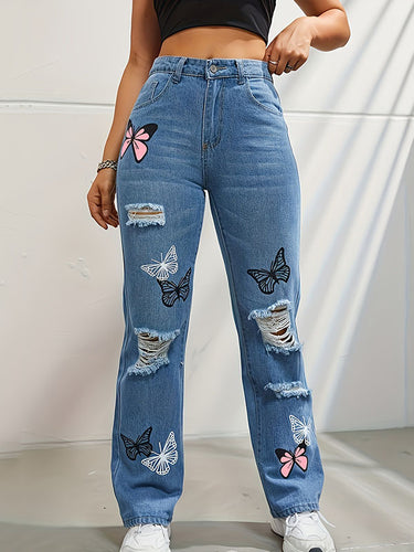 Hochverletzter Schmetterlingsdruck gefressener Abgeschwindigkeits-Jean-Hosenboten