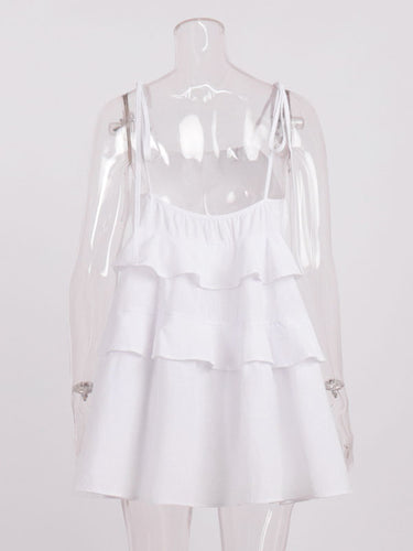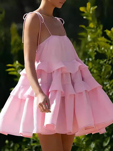 Hohe taillierte lose rückenfreie, geschichtete, fehlfarbene, farbene Spaghetti-Neck-Mini-Kleider
