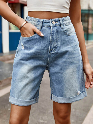 Hohe taillierte lockere geknöpfte Taschen Jean Hosen Unterteile Shorts Bottoms