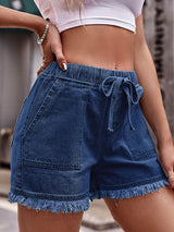 Hohe taillierte loses kordelförmige Elastizitätstaschen Jean Hosen Unterteile Shorts Bottoms