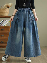 Hohe taillierte lose Elastizität Falten -Taschen Jean Hosenboden