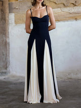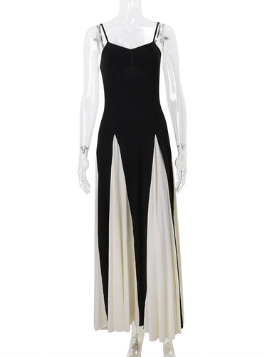 Hohe, treue ärmelloses zurückless kontrastfarbe plissierte spaghetti-neck maxi kleider