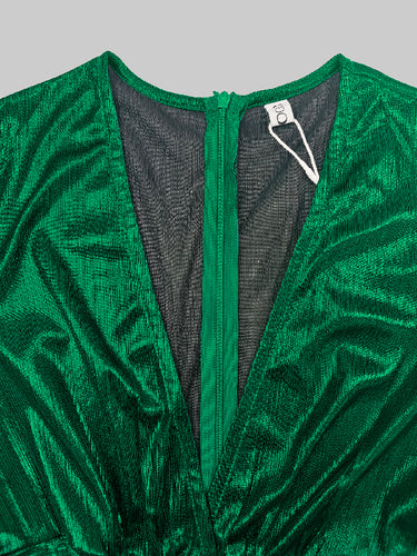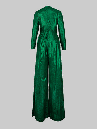 Hohe taillierte Dreiviertelhülsen glänzende feste Farbe Deep V-Ausschnitt Overalls Bottoms