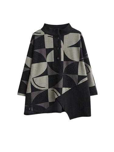 Langarmes asymmetrische geknöpfte gedruckte Ständerkragen Sweatshirt Top + Harem Hosen Hosen untere zwei Teile Set Set Set