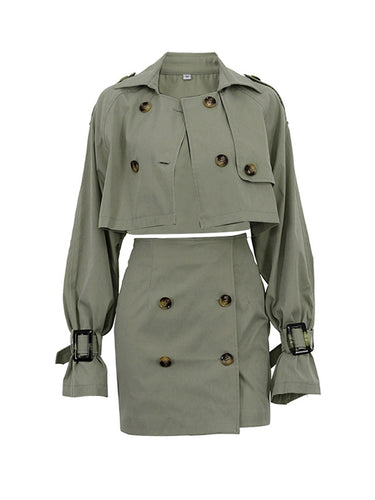 Langhülle Schnalle Knopfteckte Split-Revers-Oberbekleidung Top + Bodycon-Röcke untere zwei Teile Set Set