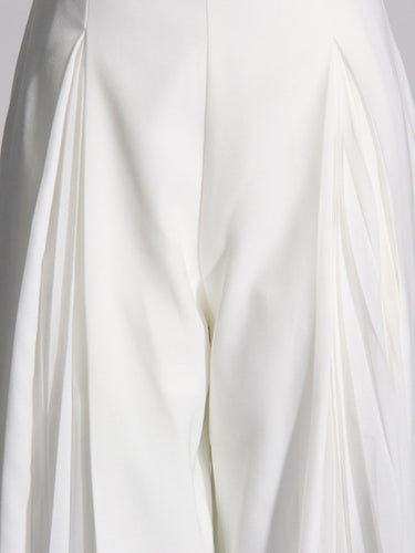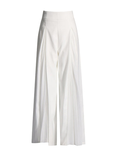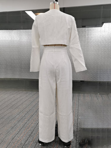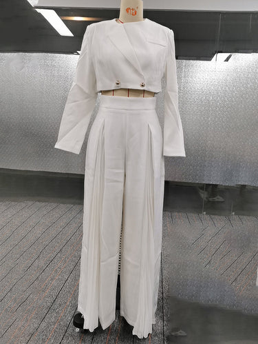 Langhülse geknöpfte Festfarb-Split-Gelenk-Blazer mit rundem Hals ober + Reißverschluss mit Reißverschluss Weitbein Mesh Faltenhosen unten zwei Teile gesetzt