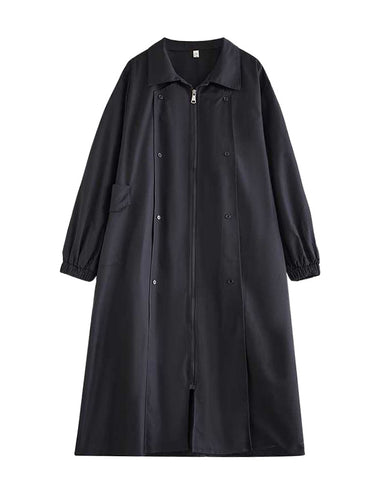 Lange Ärmeln lose knopfte Elastizitätstaschen Split-Gelenk Reißverschluss Revers-Außenbekleidung Grabenmäntel
