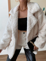 Lange Ärmel lose geknöpfte Taschen Feste Farbvelvette gekerbter Kragen Außenbekleidung