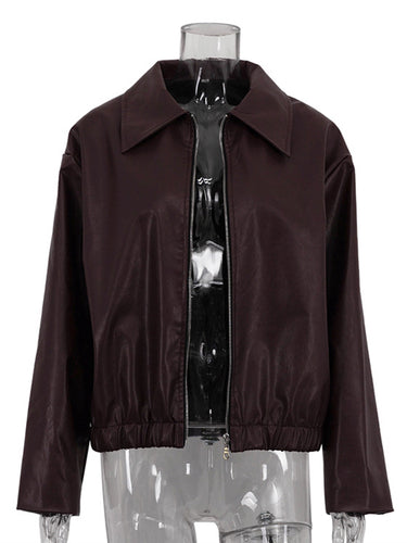 Lange Ärmeln lose Elastizität Feste Farbe Reißverschluss -Lappeljacken Oberbekleidung