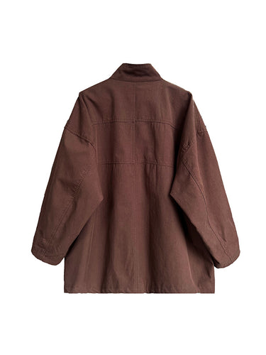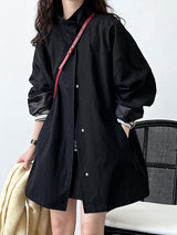 Lange Ärmel lose Taschen Feste Farbständer Kragen Oberbekleidung Grabenmäntel