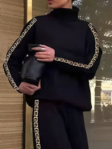 Lange Ärmeln lose gedruckte feste Farbe hoher Nacken -Sweatshirt -Tops