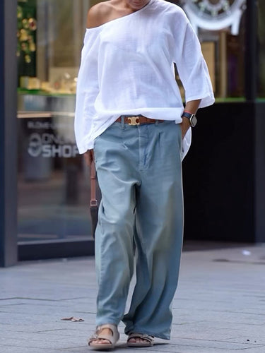 Lange Ärmeln losen feste Farbe One-Shoulder-T-Shirts Tops
