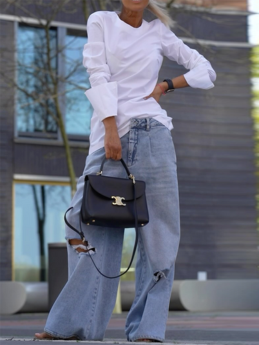 Lange Ärmeln losen solide Farb-Rund-Hals-T-Shirts Tops