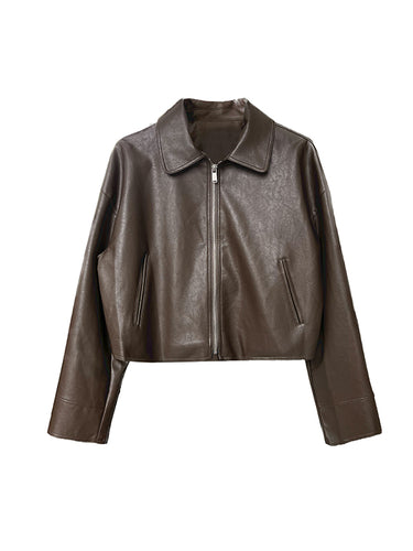 Lange Ärmeln losen Solid Color Reißverschluss -Lappelkragen und -mäntel Außenbekleidung