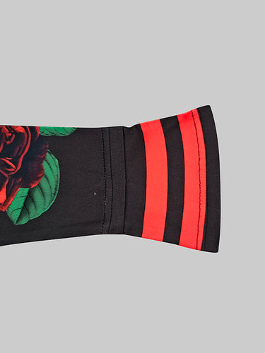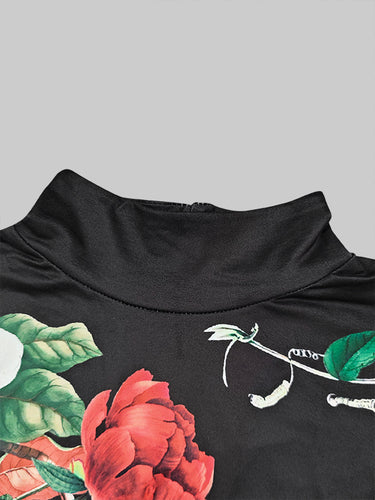 Langarmes dünne, floralgedruckte Split-Gelenk-T-Shirts mit hohem Nacken