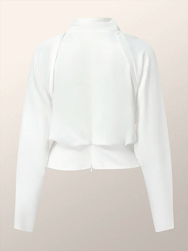Langarmes Feste Farbe Reißverschluss V-Ausschnitt Blusen und Hemden Tops