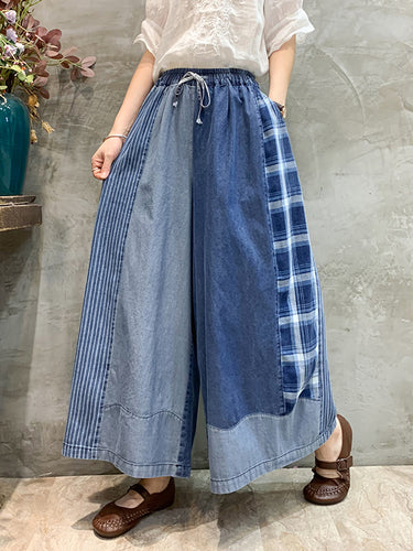 Loses-Kordel-Elastizität Plaid Split-Gelenk neunte Jeanhosenboden