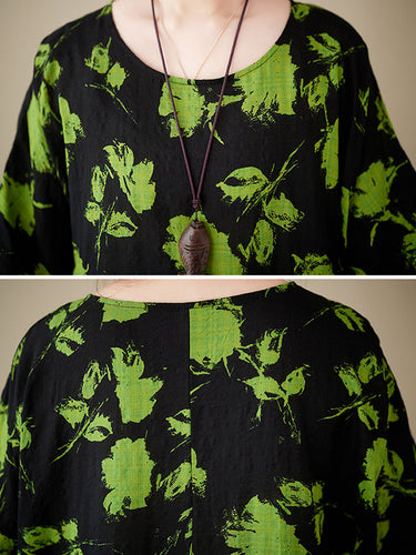 Lose florale Falten mit Rundhals-Midi-Kleidern