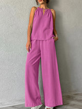 Loose Hohlhöhle Split-Gelenkhalter-Neck-Weste + Elastizität hohe Taillenhosen Hose Zwei Stücke Set