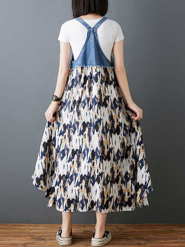 Lose Plus-Size-Blütendrucktaschen Spaghetti-Neck Maxi Kleider Kleid mit Spaghetti-Neck