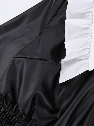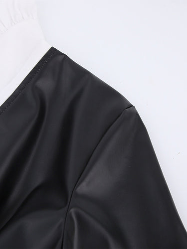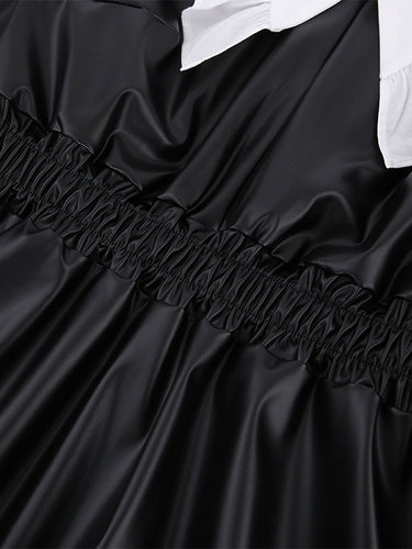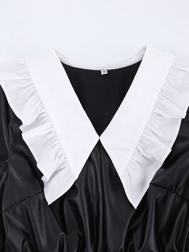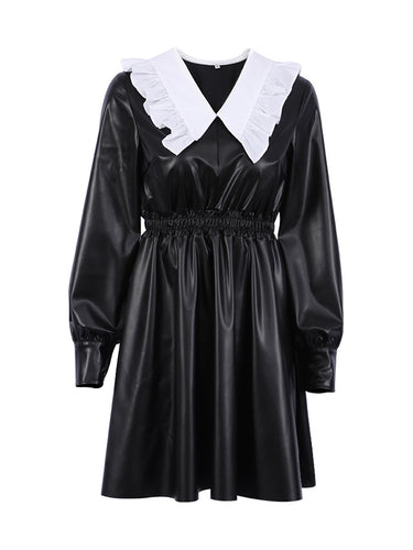 Lose Puffärmel Elastizität Falten-Split-Gelenk Peter Pan Kragen Mini-Kleider