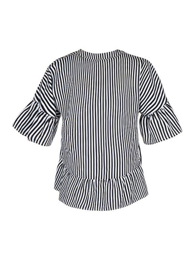 Lose Raglan-Ärmel Asymmetrische Falbala plissierte, geteilte gestreifte Streifen mit V-Ausschnitt und Hemden mit V-Ausschnitt