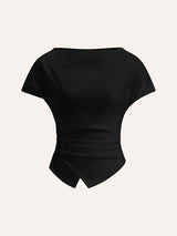 Lose Raglan-Ärmel Asymmetrische Faltenfaltenfarb-Farb-T-Shirts mit rundem Hals