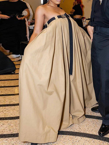 Lose ärmelloses Falten -Taschen mit festen Farbrohr -Overalls mit Gürteltaschen
