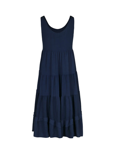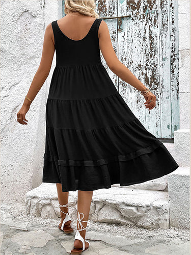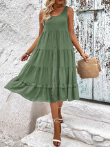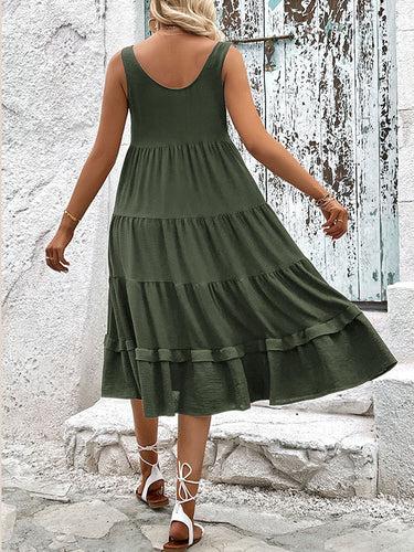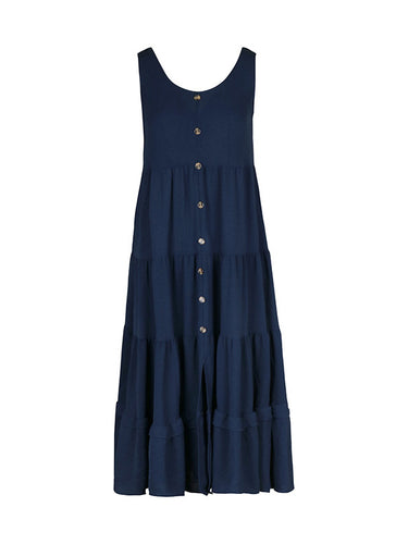 Lose ärmelloses geknöpfte, feste Farbstufe mit rundem Hals Midi-Kleidern