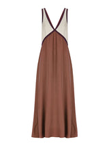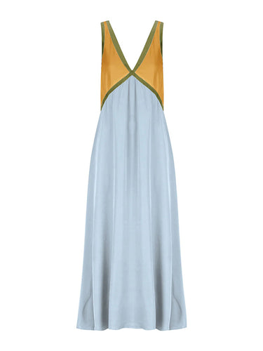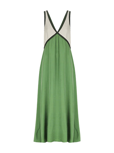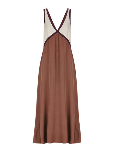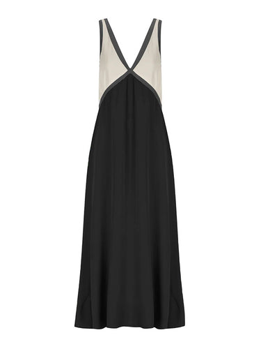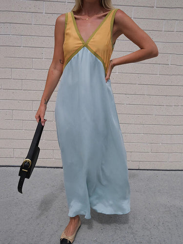 Lose ärmellose Kontrastfarbe Split-joint Deep V-Ausschnitt Maxi Kleider