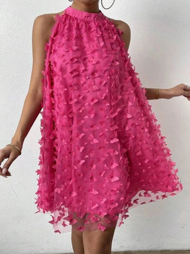 Lose ärmelloses Jacquard plissierte Feste Farbe Split-Gelenk-Standkragen Mini-Kleider