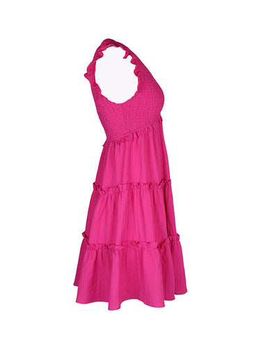 Lose ärmelloses Rüschenverkleidung Feste Farben Split-joint Deep V-Ausschnitt Mini-Kleider