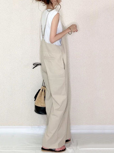 Lose ärmelloses feste Farbspaghetti-Neck-Overalls