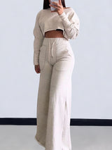 Lose feste Farbe Langarm T-Shirt + Kordelbreite Hosen Hosen Zwei Stücke Set Set