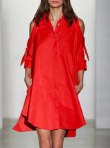 Loses feste Farbgeschwindigkeitskleid mit kaltem Schulter-Schulter-Hemdkleid geteilt