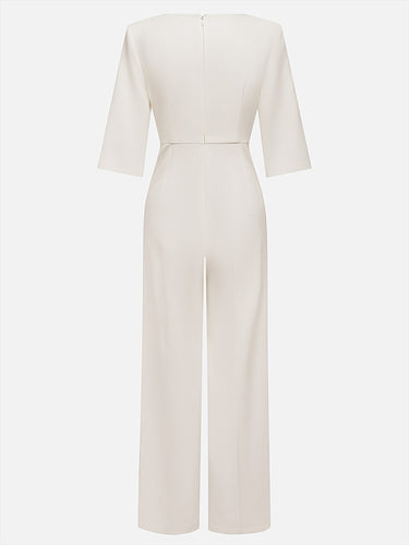 Lose, feste Farb-Split-Gelenk-Overalls mit rundem Hals