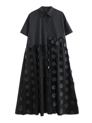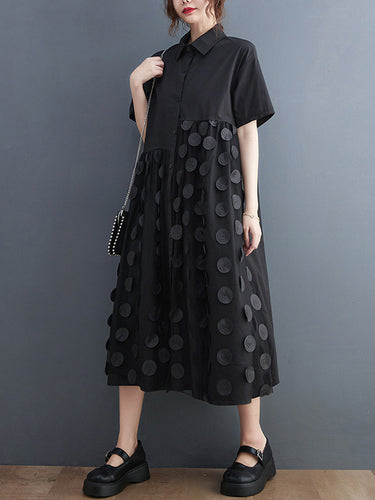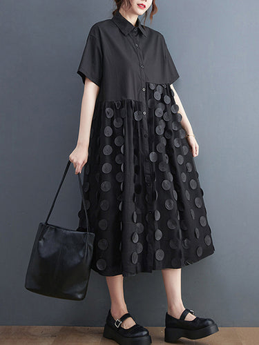 Original Casual Lose Polka-Dot Split-Joint Midi-Hemdkleid
