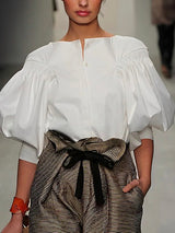 Puffärmel geknöpfte Feste Farbblusen Hemden Tops