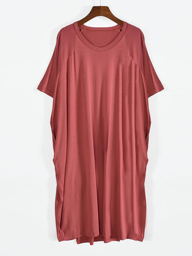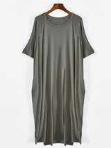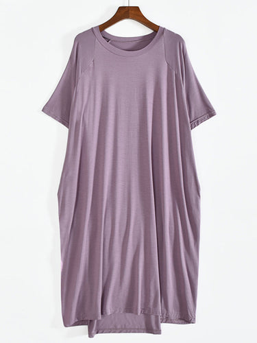 Einfache lose halbe Ärmeln Feste Pyjama-Kleid mit rundem Hals