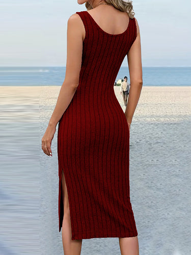 Dünne ärmellose, feste Farbstreifen gestreifte U-Neck-Midi-Kleider