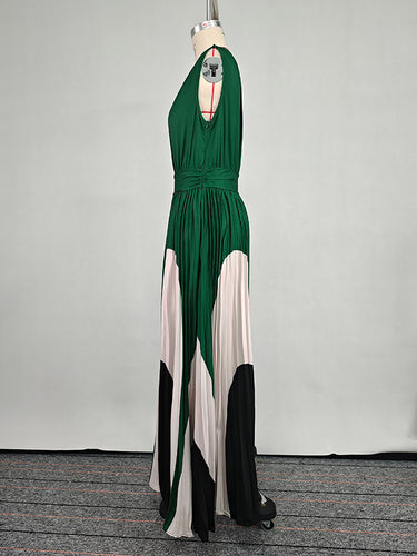 Ärmellose asymmetrische falten gedruckte One-Shoulder-Maxikleider