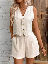 Ärmelloses Split-Gelenk V-Ausschnitt Weste + hohe taillierte Falten-Shorts Zwei Teile eingestellt