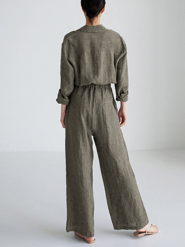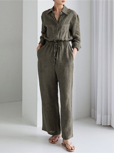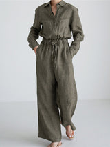 Städtische Leinen Folienstring Elastic Tailliertes weites Bein langhülende Overallsuiten