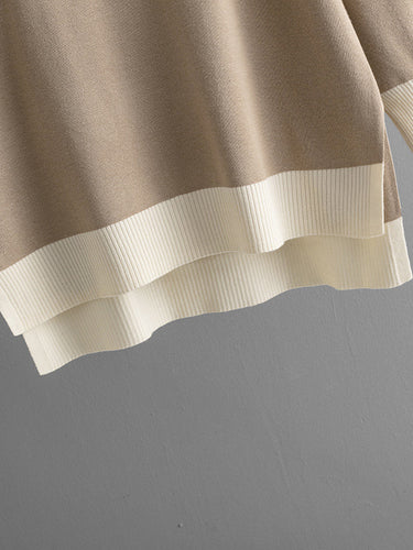 High-Low-Kontrast Farbfarbe geteiltes V-Heck-Pullover Tops + Elastizitätshose Zwei Stücke Set Set