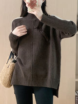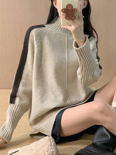 High-Low-Langarm-Kontrastfarbe Split-Gelenk mit hohem Nackenpullover Pullover Tops mit geteiltem Hals