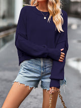 High-Low-lange Ärmeln Feste Farben Split-joint Split-Seite rund-Hals-Pullover-Pullover-Tops