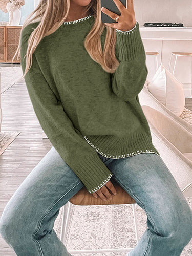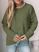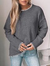 High-Low Langarmes Split-Gelenk-Split-Seite rund-Hals Pullover Sweater Tops